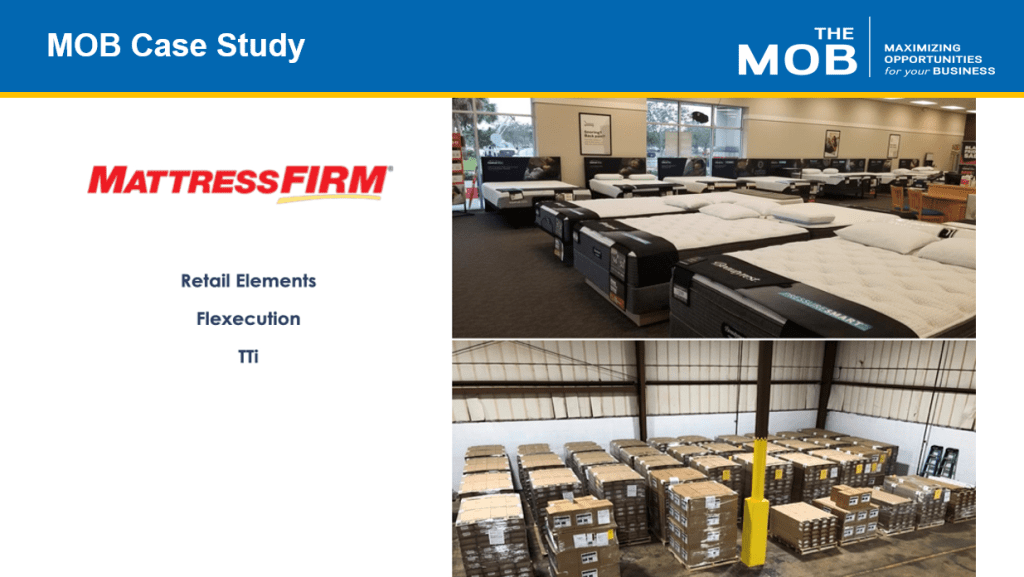 Utilizing a MOB team approach, TTi Logistics helped execute a multi phased roll out for over 7,000 Mattress Firm locations utilizing 18 of our nationwide warehouses. The team helped to exceed Mattress Firm’s completion plan while saving money with team training and refined field reporting.