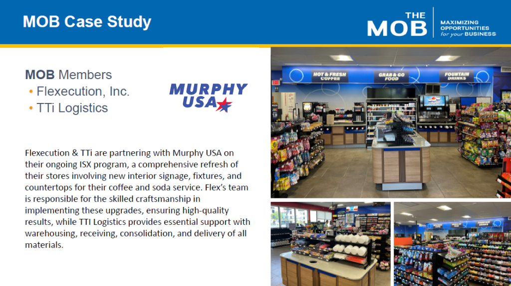TTi Logistics assisted Murphy USA on their ongoing ISX program, a comprehensive refresh of their stores involving new interior signage, fixtures, and countertops for their coffee and soda service. We provided essential support with warehousing, receiving, consolidating, and delivery of all materials.